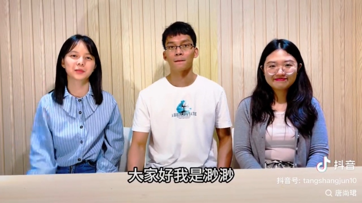 视频中唐尚珺介绍了自己团队的两位成员,是自己的校友,并表示每个周末都会在直播间与大家见面,分享大学有趣的学习和生活。“锁定我们的直播间,不见不散。”