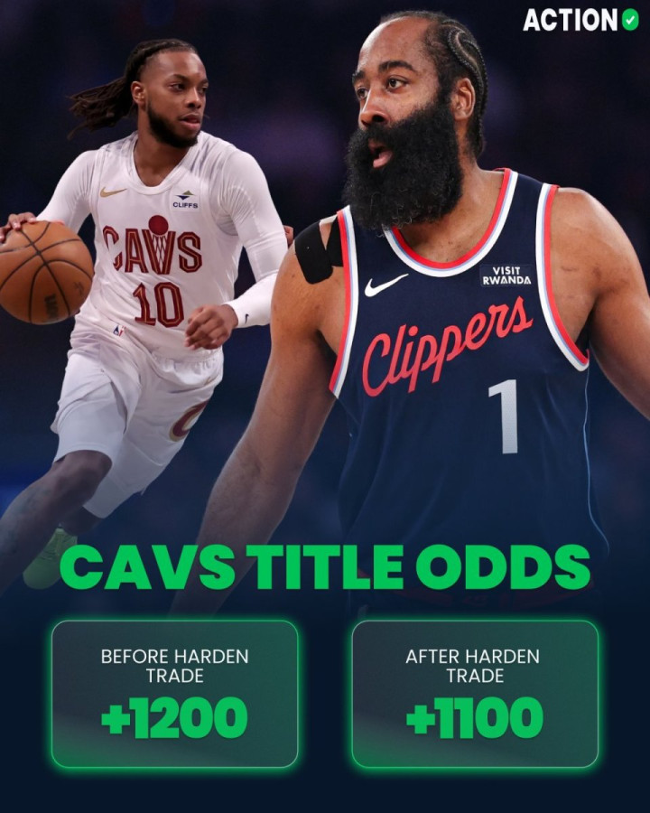 与此同时,多家美媒预测了骑士队的全新五虎:哈登、米切尔、泰森、莫布里、贾勒特-阿伦!在得到哈登之后,骑士队的夺冠赔率也得到了提升,从之前的+1200瞬间提升到+1100。而他们夺得东部冠军的概率已经提升到26%,高居东部第一位!